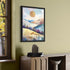 A framed watercolor landscape of rolling hills at sunset. Striking colors wash across the sky and fields, with soft bushes in the foreground, creating a vibrant yet calming view for your walls.